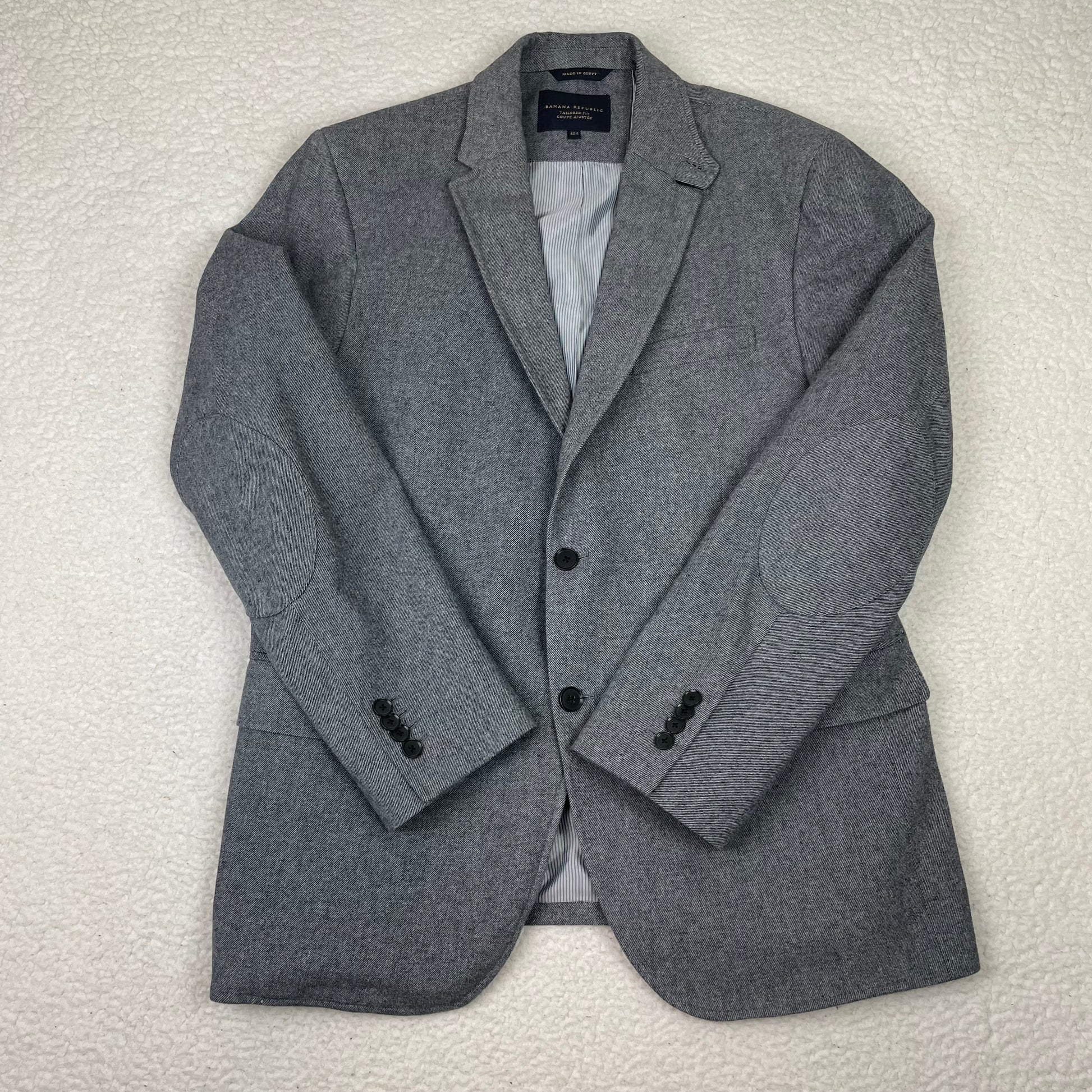 Banana Republic Elbow Patch Twill Gray Wool Blazer