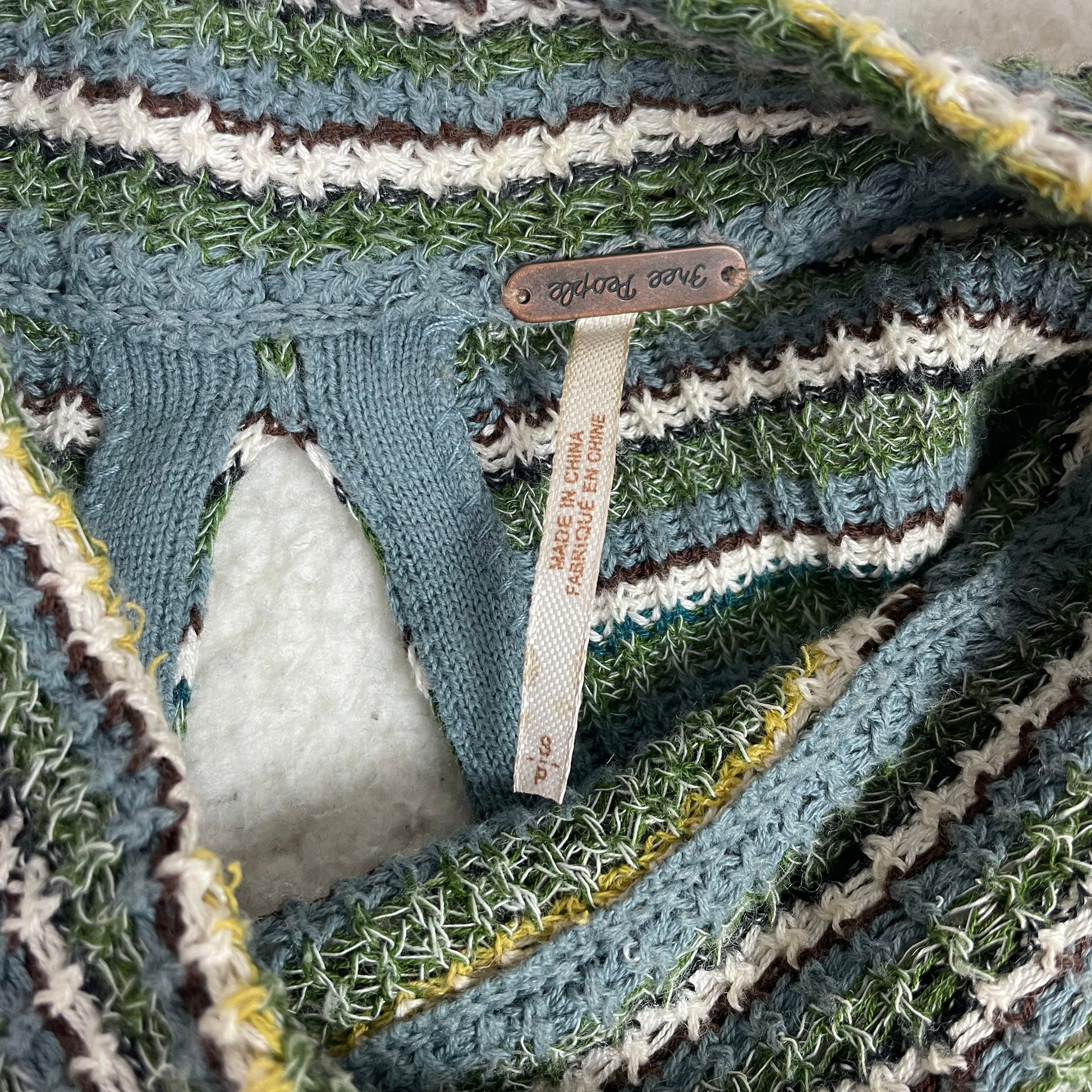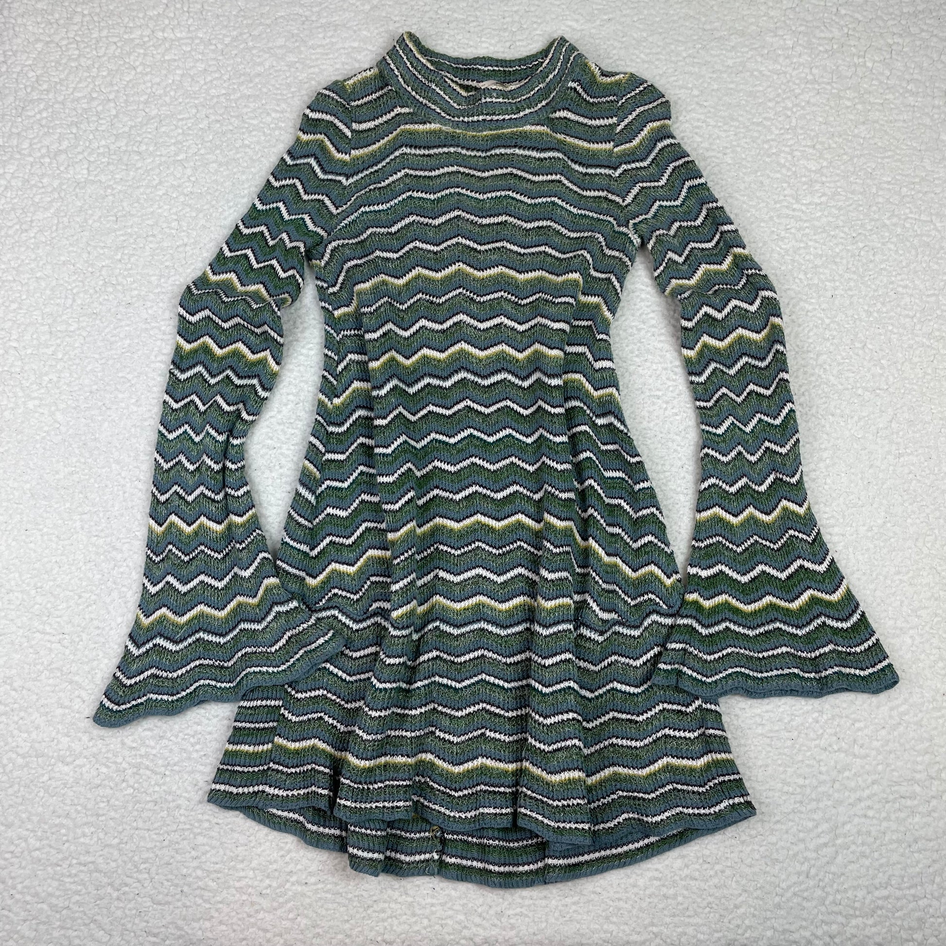 Free People Boho Zig Zag Striped Bell Sleeve Sweater